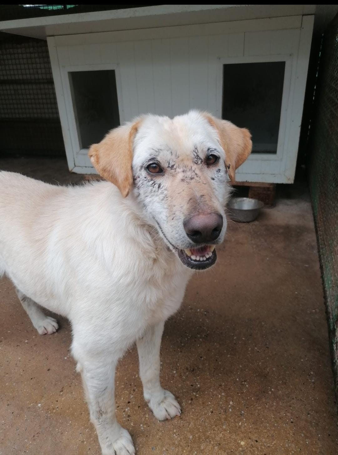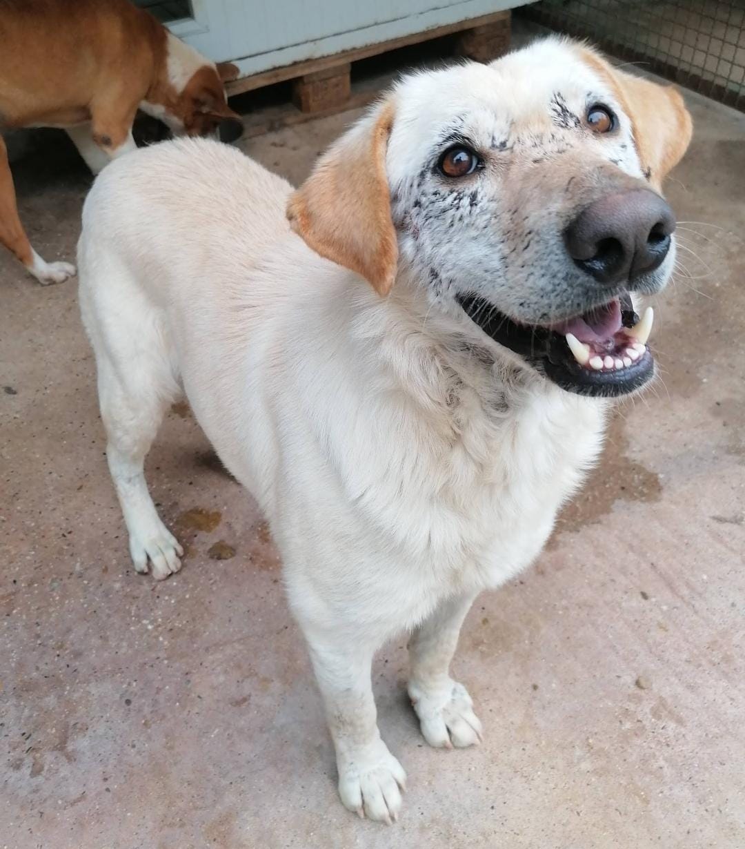 Dolli teilt sich ihren Zwinger mit unserem schönen Rüden Eko. Die beiden verstehen sich sehr gut. Aber auch Eko ist kein Ersatz für eine echte Familie, die wir Dolli so sehr wünschen.