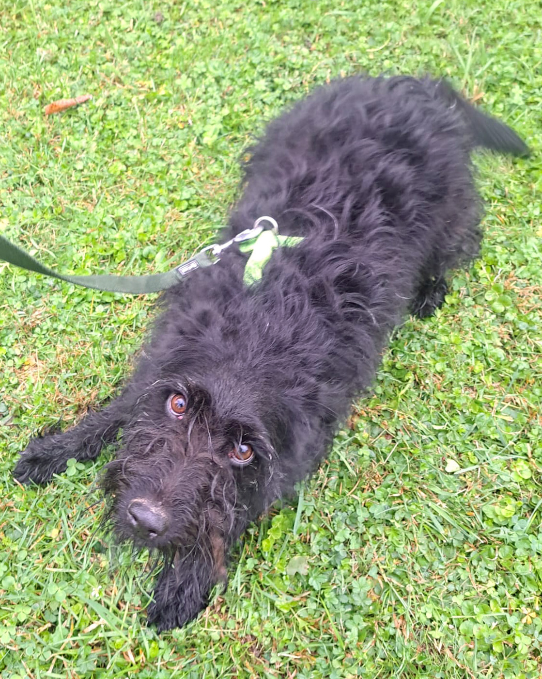 Ihr Verhalten verrät, dass sie in der Vergangenheit vermutlich Strafen erlebt hat. Wenn die Stimme erhoben wird, legt sie sich schnell beruhigt auf den Boden – eine klare Reaktion auf Stress, die ihren sensiblen Charakter widerspiegelt. Mit Geduld, Ruhe und liebevoller Führung kann ihr Vertrauen weiter wachsen.