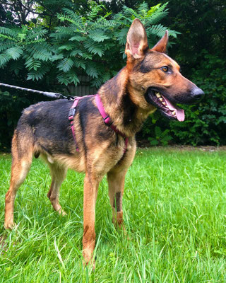 Bis vor Kurzem hatte unser hübsches Kerlchen eine freiwillige Gassigeherin. Er kennt das Laufen an der Leine also auch bereits.